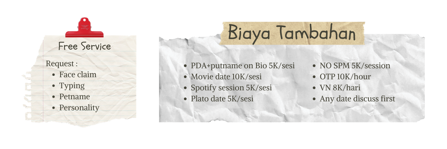 Baik Client maupun Talent dimohon untuk saling menghargai privasi serta menjaga batasan real life satu sama lain. Code : sayangku