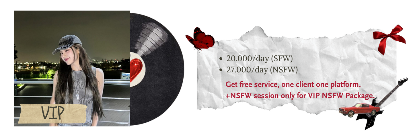 Packages NSFW hanya dibuka untuk ONS, VIP, VVIP saja. Client diwajibkan sudah berumur 21+.